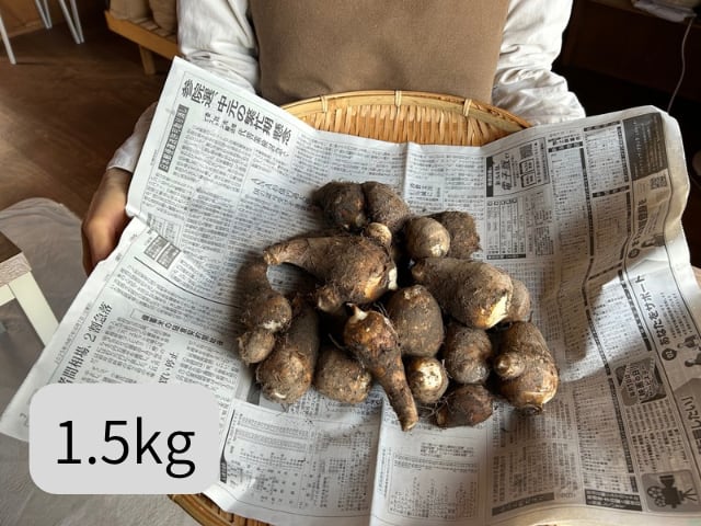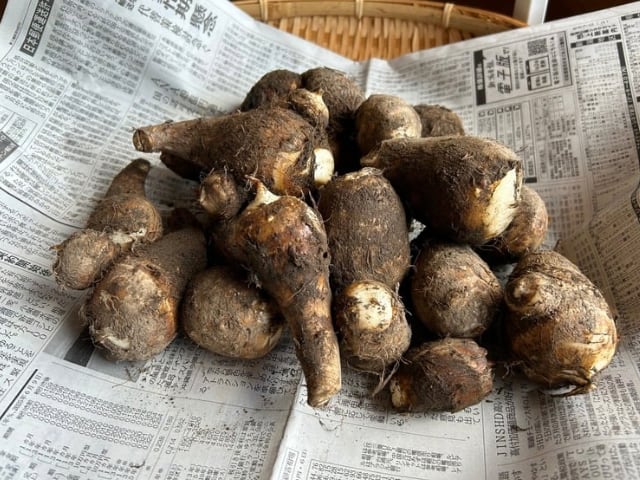 自然栽培で育てたサトイモ、品種は"土垂"になります。